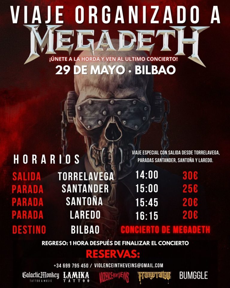 Desde Violence in the Veins nos pasan esta información sobre el viaje que montan para ir a ver a Megadeth a Bilbao. ¿Ganas de ver a Mustaine y los suyos…